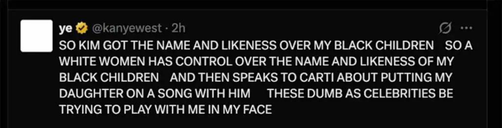 Sources close to the star say Kanye hasn’t spoken to their children in months. However, he’s found time for fiery online rants, even accusing Kim of “controlling their four Black children.”
