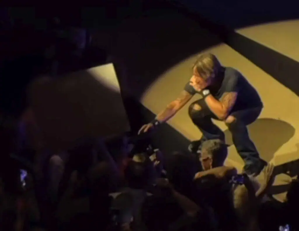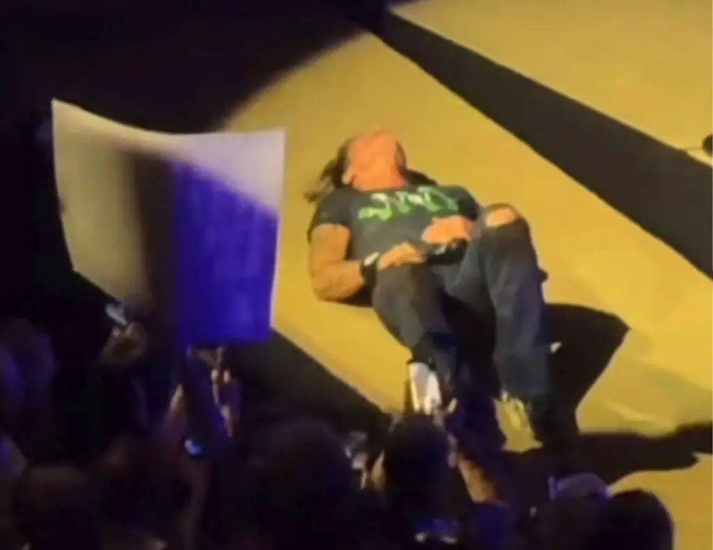 According to a viral TikTok clip, Urban dramatically fell to the stage floor, laying flat in mock defeat as the audience roared.