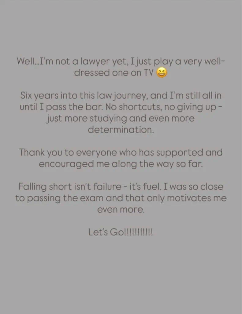 “Six years into this law journey, and I’m still all in until I pass the bar. No shortcuts, no giving up — just more studying and even more determination.”